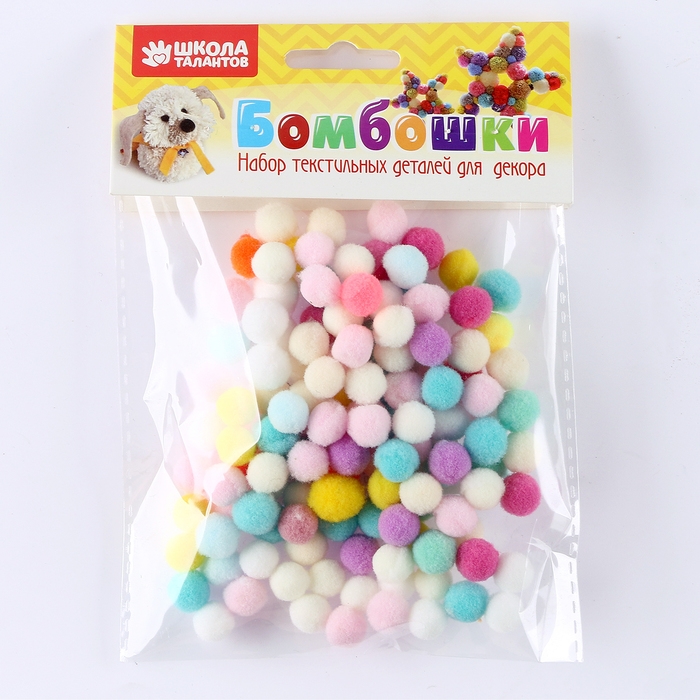 Набор текстильных бомбошек подойдёт для создания детских поделок и аппликаций, декорирования кукол и игрушек.