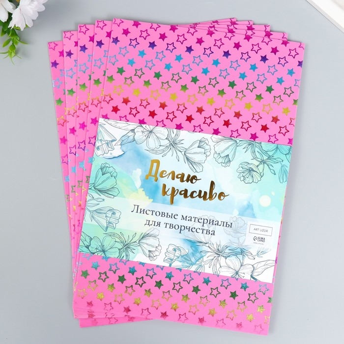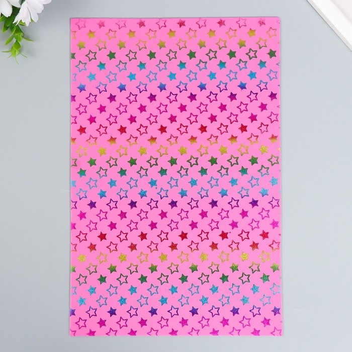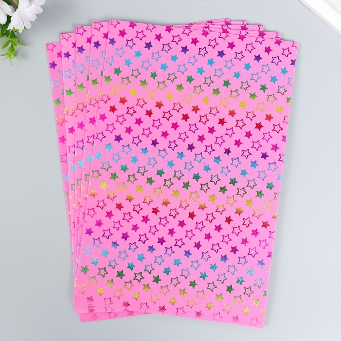 Фоамиран "Золотые звезды на ярко-розовом" 2 мм формат А4 набор 5 листов