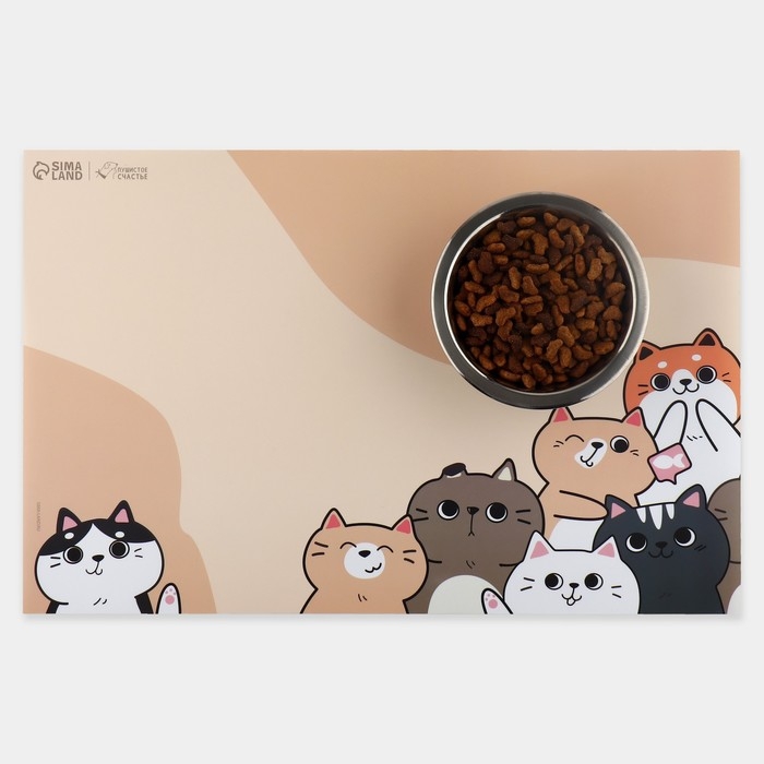 Коврик под миску "Пижон" 43 х 28 см "Котики в ожидании"