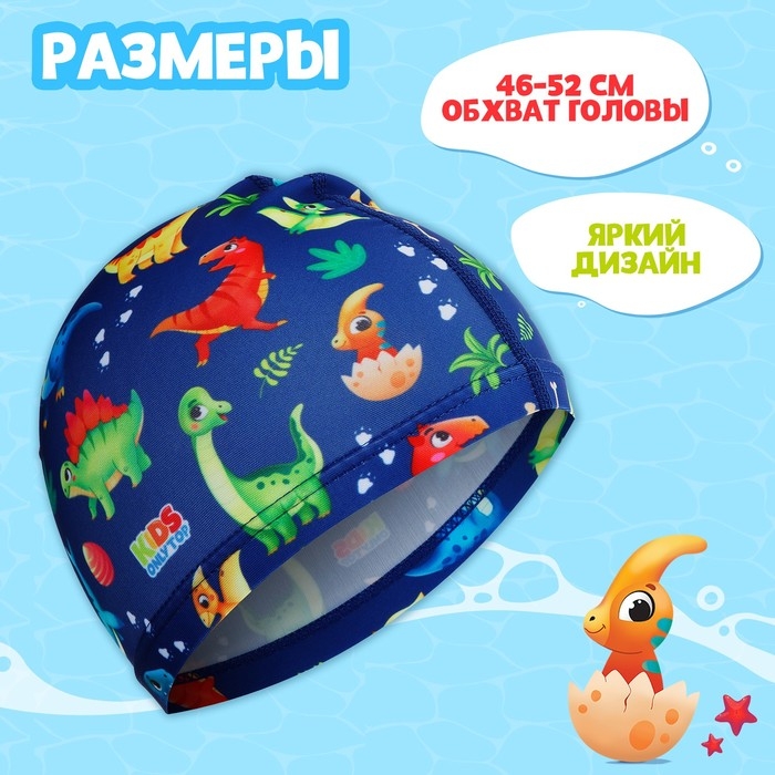 Шапочка для плавания детская ONLYTOP «Динозаврики», тканевая, обхват 46-52 см