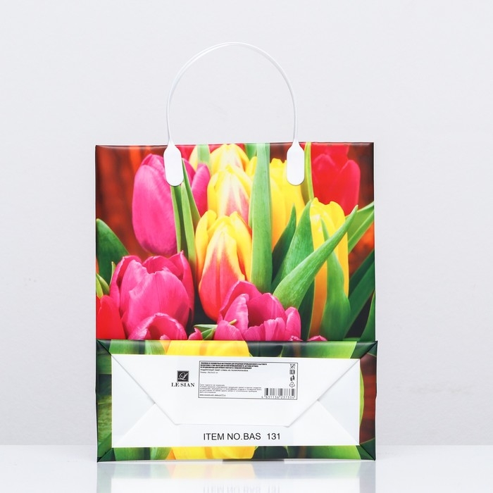 Пакет "Цветы весенние", красный, мягкий пластик, 26 х 23 см 110 мкм