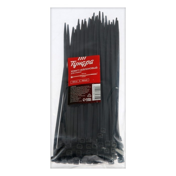 Хомут нейлоновый ТУНДРА krep, для стяжки, 4.8х200 мм, черный, в упаковке 100 шт.