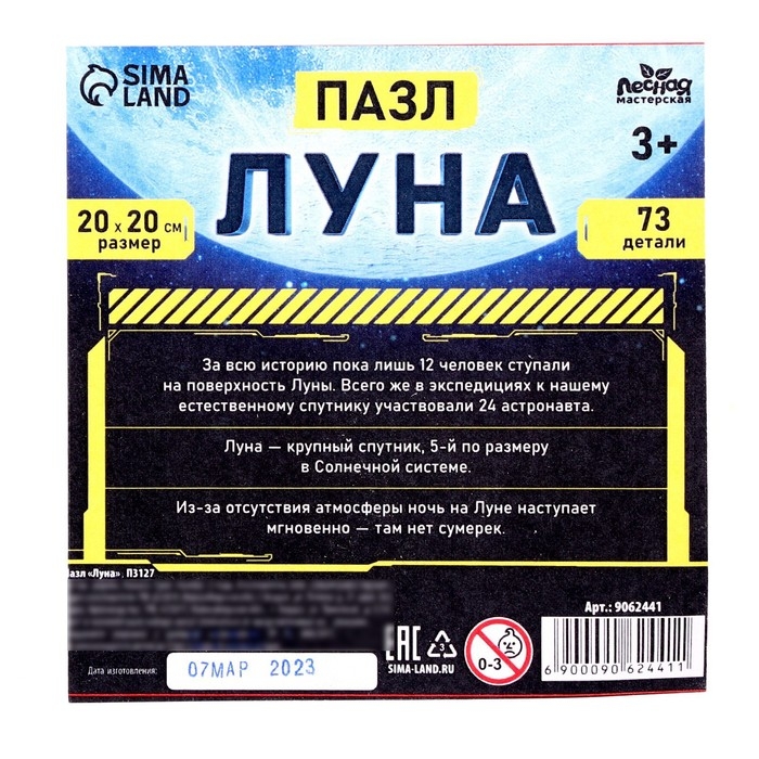 Пазл деревянный «Луна», 20 х 20 см, 73 детали