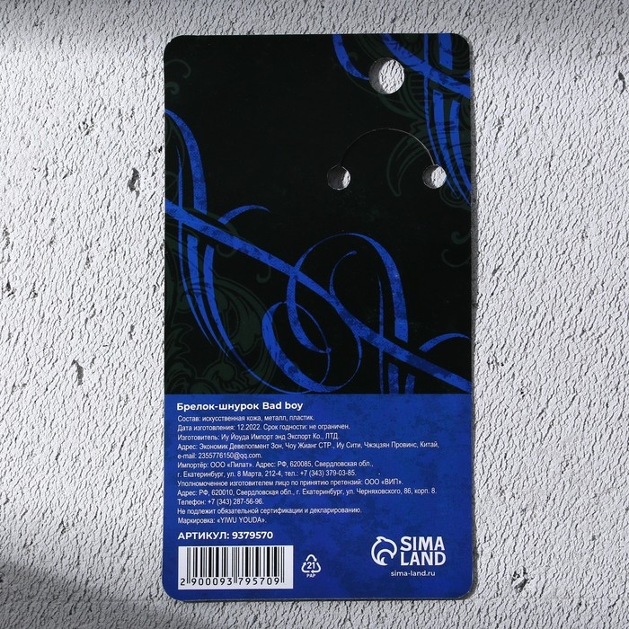 Брелок для ключей шнурок «Bad boy», 11 х 3 см