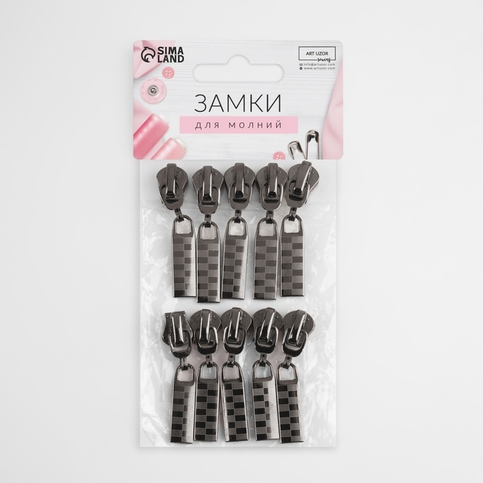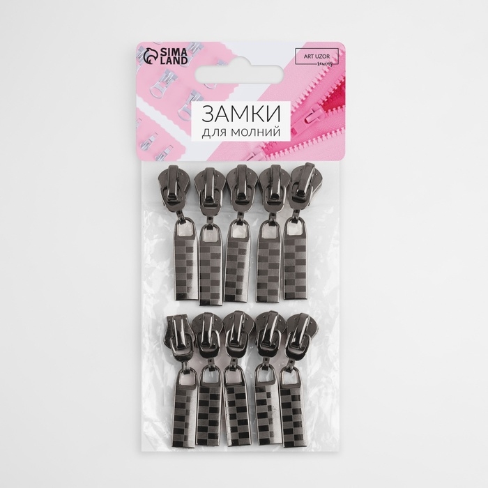 Бегунок автоматический для молнии «Трактор», №5, 10 шт, цвет чёрный никель