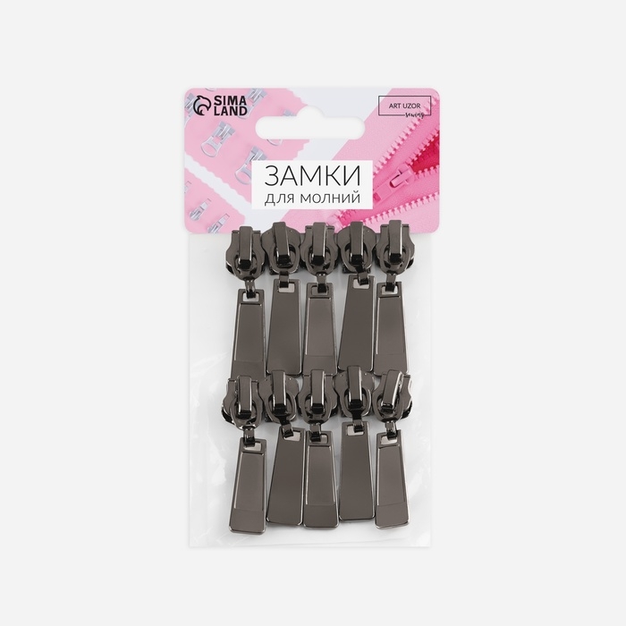 Бегунок автоматический для металлической молнии, №5, 10 шт, цвет чёрный никель