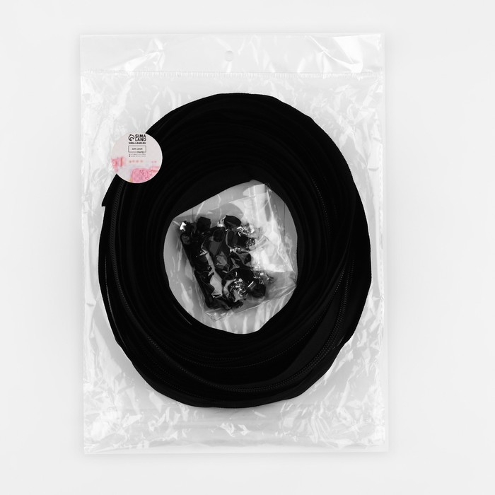 Набор: рулонная молния «Спираль» №5, 10 м, 20 бегунков, 40 верхних ограничителей, 20 нижних ограничителей, цвет чёрный