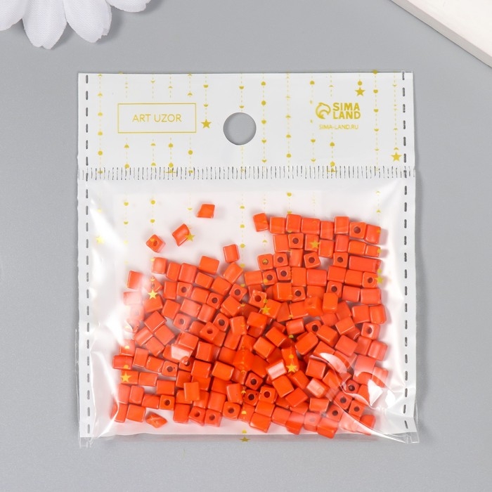 Бисер кубический стекло 4х4 мм "Яркость. Апельсин" набор 20 гр