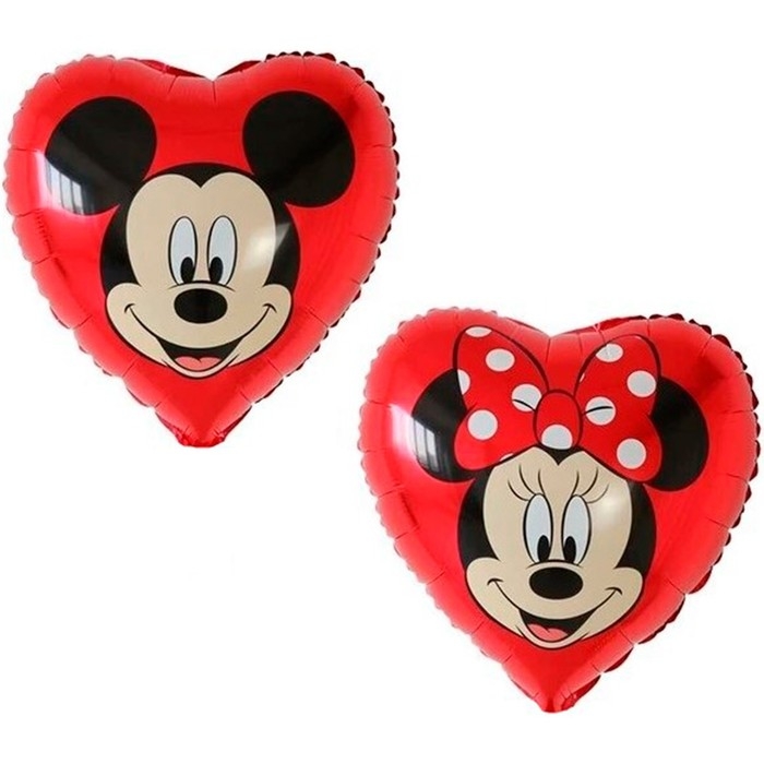 Шар фольгированный 18" «Микки Маус и Мини Маус», сердце, красный, 1 шт.