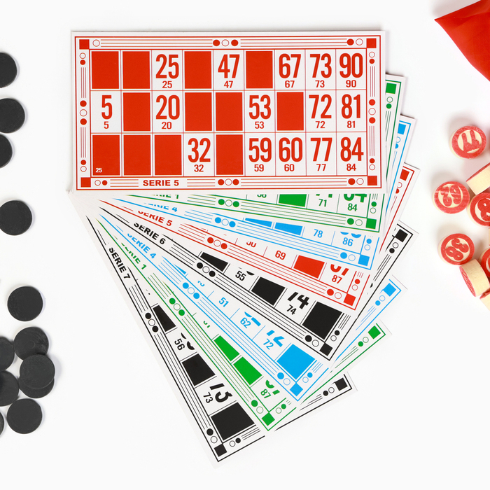Представляем классическую версию популярной настольной игры. Перед началом партии необходимо сложить в специальный мешочек все бочонки с номерами. Ведущий должен не глядя по очереди доставать их и объявлять число, а участники — закрывать соответствующие поля на карточках. Побеждает тот, кто заполнит свою карточку первым.