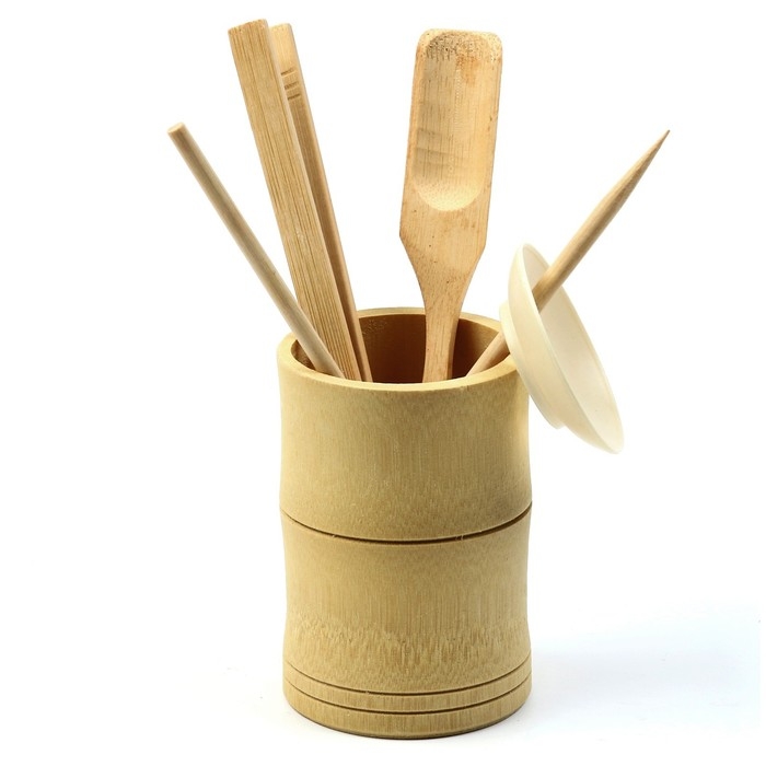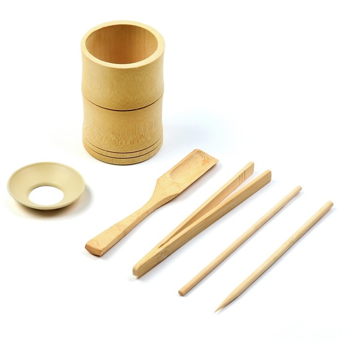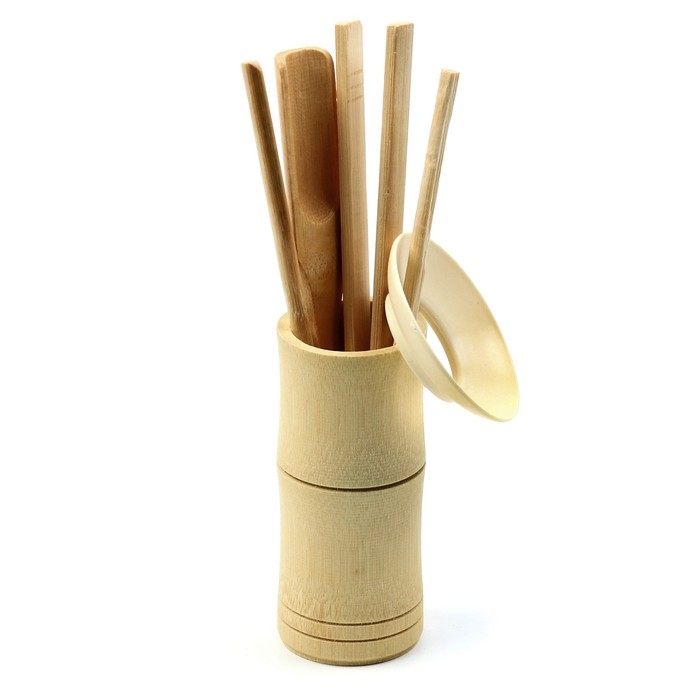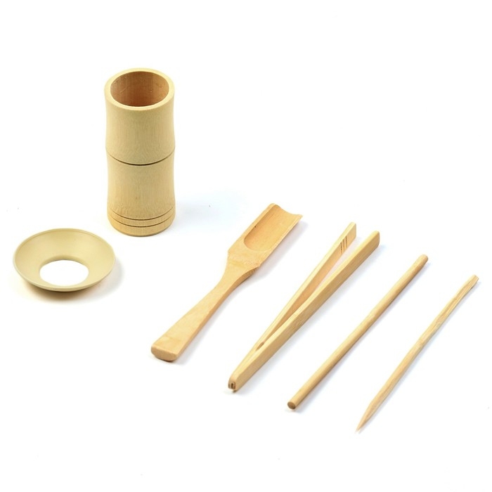 Набор инструментов для чайной церемонии: кисть, ухват, щипцы, нож, мерная лопатка