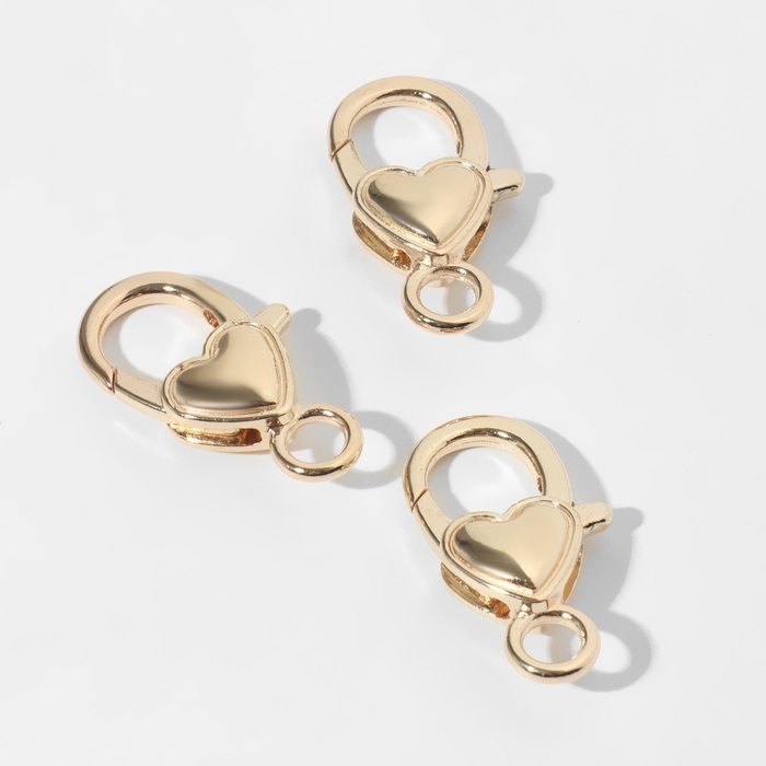 Замок-карабин «Сердечко» гладкое, (набор 3 шт.), 14×26 мм, цвет золото