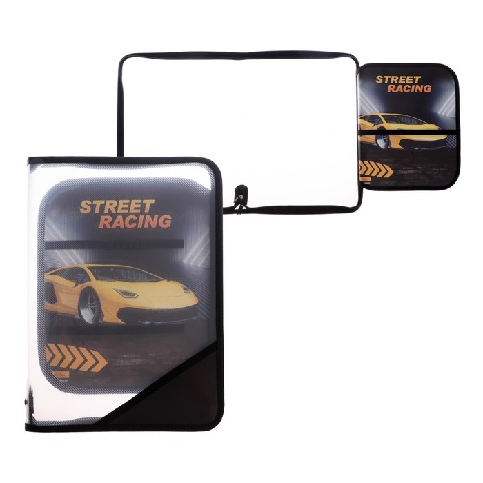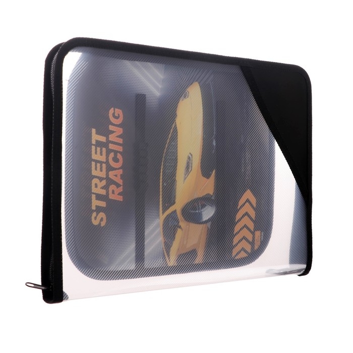 Папка для труда А4, 325 х 230 х 25 мм, молния вокруг, откидная планка, пластиковая, ПТР-1, Calligrata "Тачка"