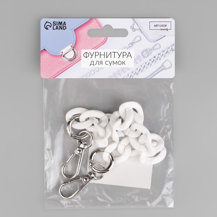 Цепочка для сумки, пластиковая, с карабинами, 23 × 17 мм, 30 см, цвет белый/серебряный