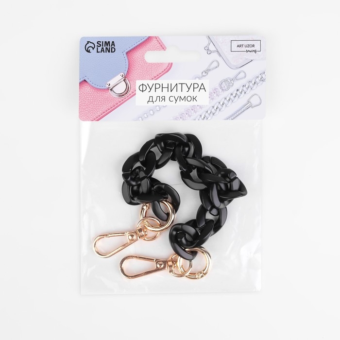 Цепочка для сумки, пластиковая, с карабинами, 23 × 17 мм, 30 см, цвет чёрный/золотой