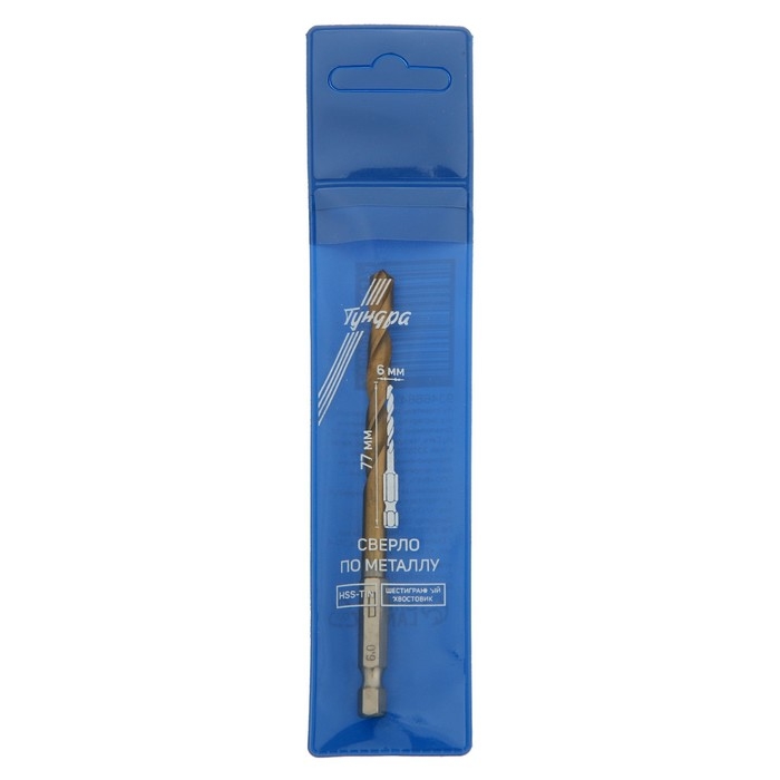 Сверло по металлу ТУНДРА, HSS-Tin, шестигранный хвостовик, 6 х 77 мм