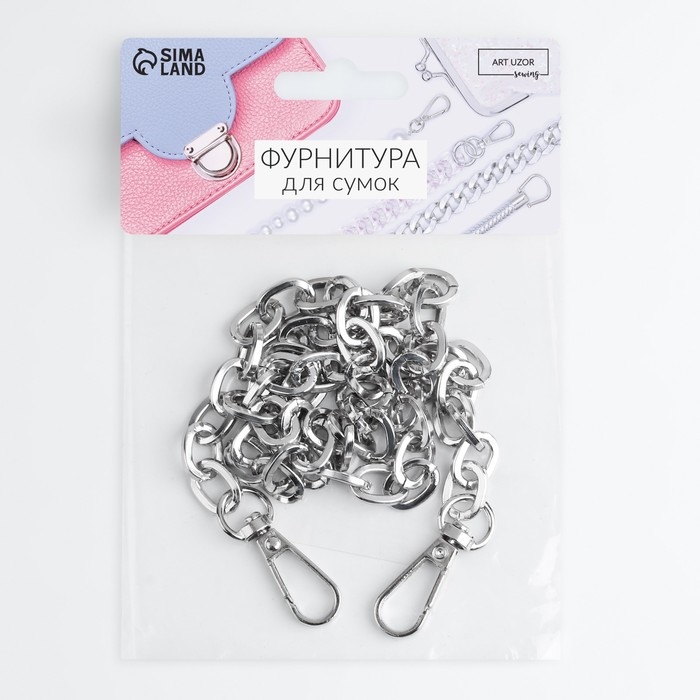 Цепочка для сумки, с карабинами, 14 × 10 мм, 60 см, цвет серебряный