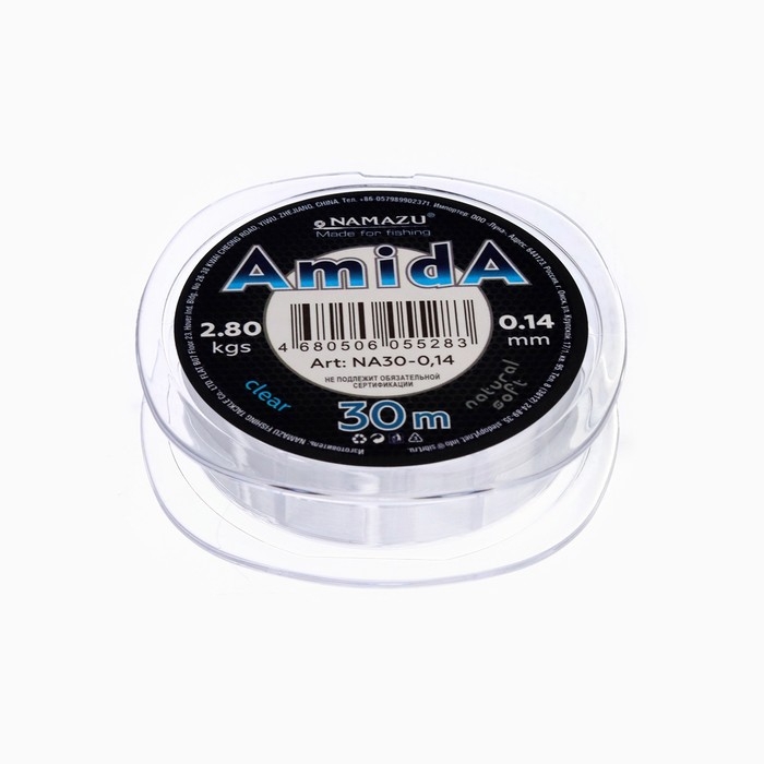 Леска Naмazu Aмida, диаметр 0.14 мм, тест 2.8 кг, 30 м, прозрачная, 1 шт.
