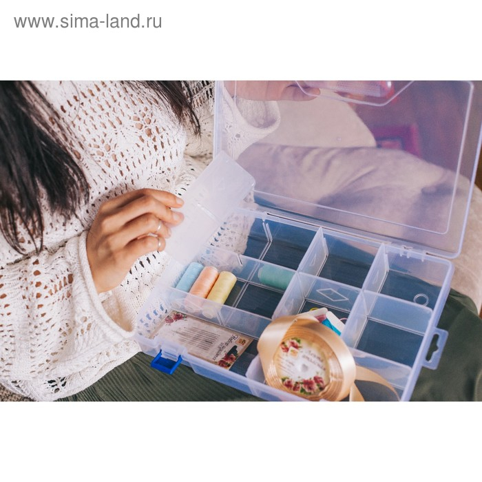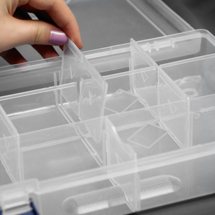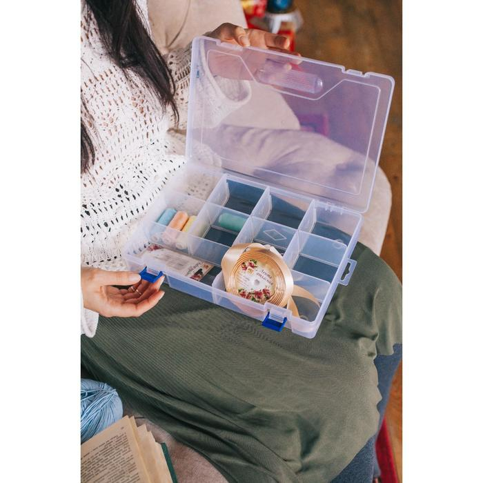 Органайзер для рукоделия, со съёмными ячейками, 10 отделений, 31 × 20,5 × 6 см, цвет прозрачный