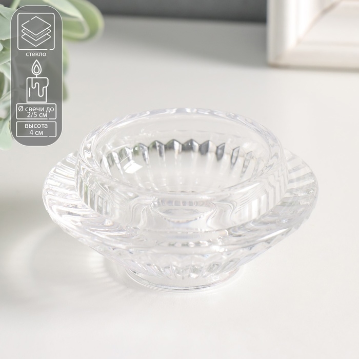 Подсвечник стекло "Фонтан" двухсторонний прозрачный d- 2 и 5 см 8х8х4 см