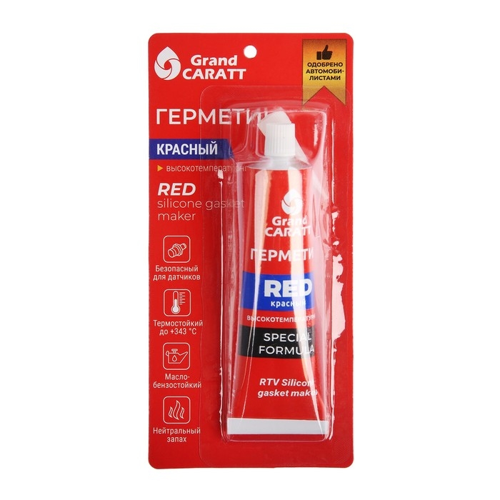 Автомобильный высокотемпературный силиконовый герметик-прокладка Grand Caratt предназначен для ремонта или формирования прокладок в узлах автомобиля, подверженных воздействию высоких температур, таких как крышка картера/поддон КПП, поддон картера ДВС, корпус термостата, водяная помпа. Может наноситься на штатные прокладки для улучшения их эксплуатационных свойств (не рекомендуется для применения на ГБЦ). Не разрушается под действием автомобильных технический жидкостей (масел, антифриза, тормозной жидкости и т.п.).