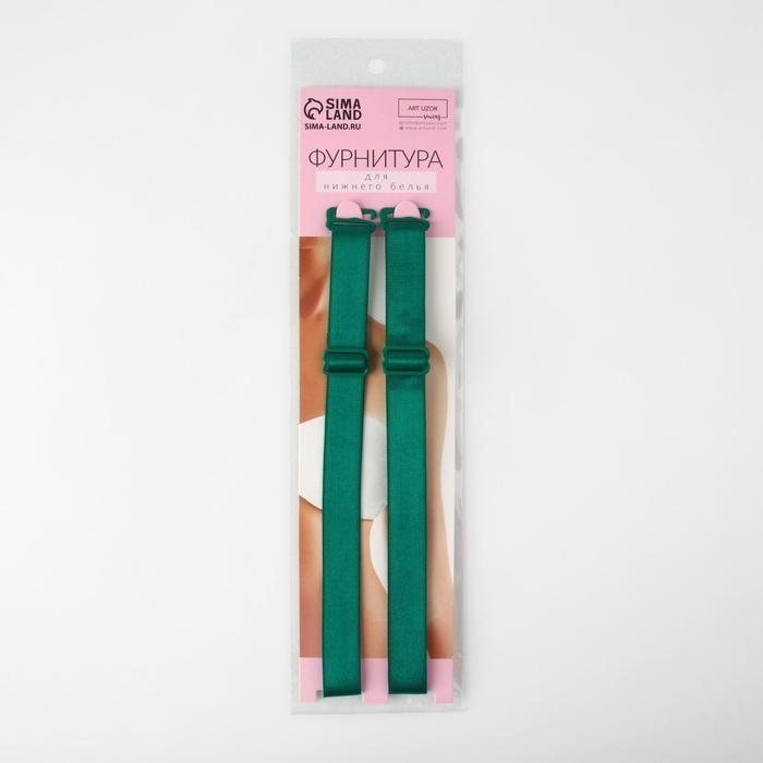Бретели текстильные, 1,5 см, 37 см, пара, цвет изумрудный