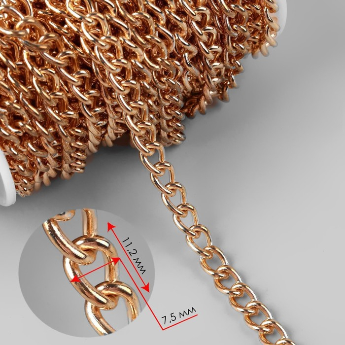 Цепочка для сумки, железная, 7,5 × 11,2 мм, 10 ± 0,5 м, цвет золотой
