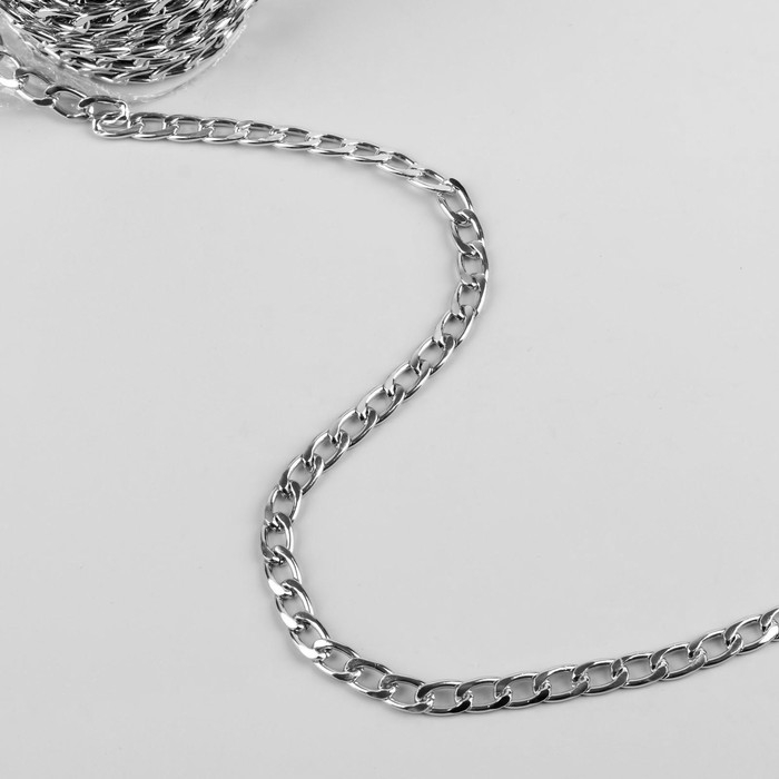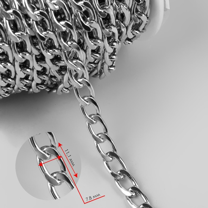 Цепочка для сумки, плоская, алюминиевая, 7,8 × 11,1 мм, 10 ± 0,5 м, цвет серебряный