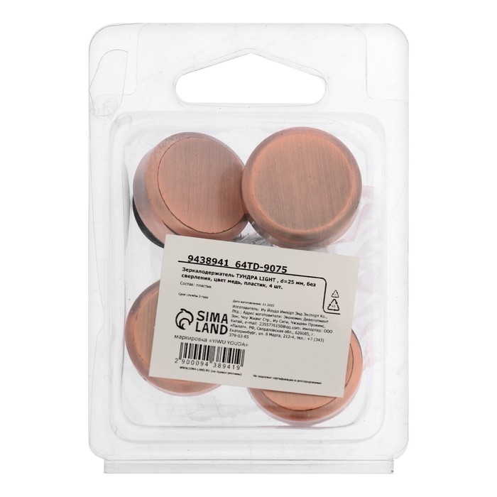 Зеркалодержатель ТУНДРА LIGHT , d=25 мм, без сверления, цвет медь, пластик, 4 шт.