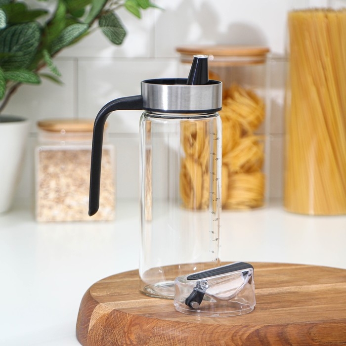 Бутыль стеклянная для соусов и масла с автоматически откидывающейся крышкой при наклоне имеет мерную шкалу и эргономичную пластиковую ручку. На бутылке имеется удобный дозатор и клапан. Идеально подойдет для порционной подачи масла и соуса. Красивая и удобная ёмкость для масла и уксуса незаменимая помощница на кухне и элемент декора. Бутылка с дозатором герметично закрывается, сохраняет аромат и вкус надолго.