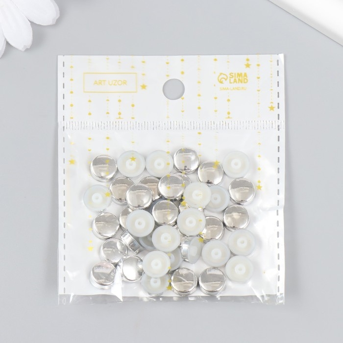 Декор для творчества пластик "Круг" набор 40 шт серебро 1х1х0,3 см