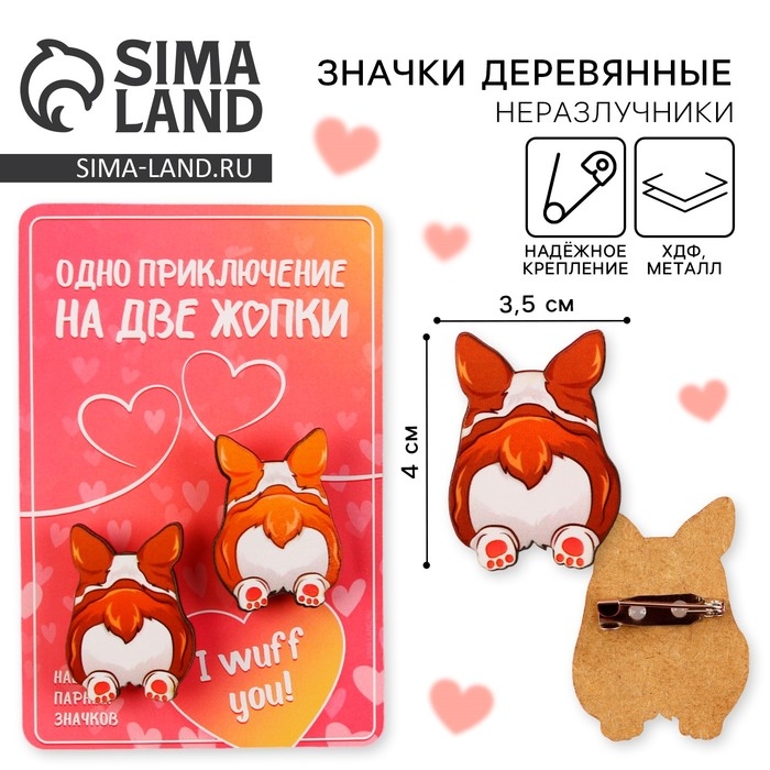 Значки деревянные, неразлучники «Одно приключение», 2 шт., 8 х 12 см.