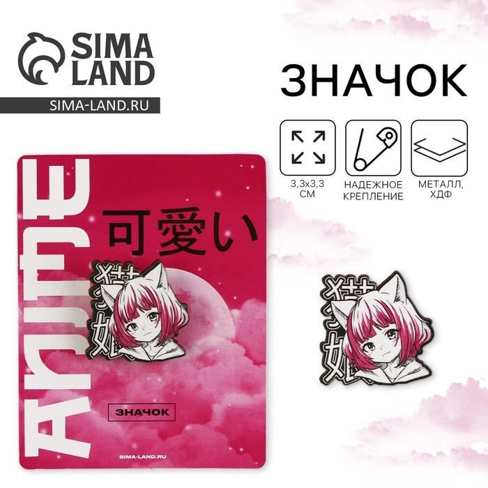 Значок деревянный «Девочка котик», аниме, 3,3 х 3,3 см - яркий элемент, который порадует любого.
