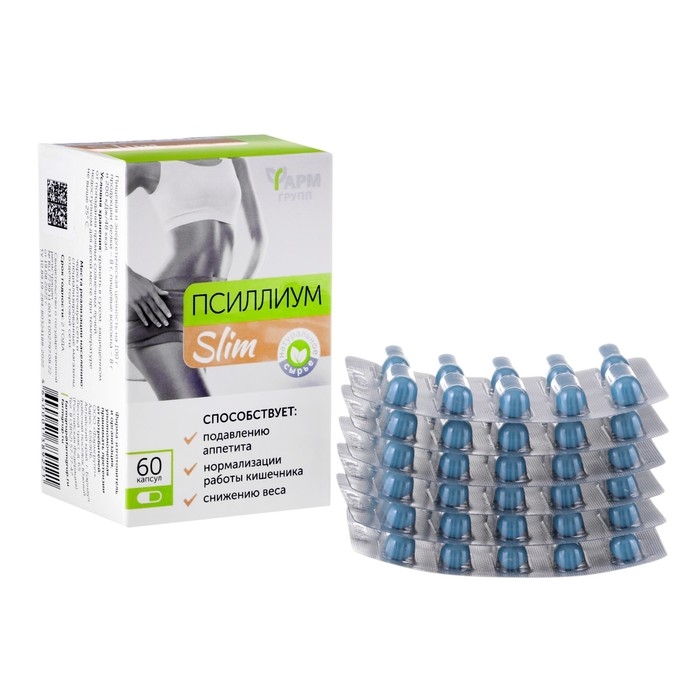 Псиллиум Slim Caps, для снижения веса и подавления аппетита, 60 капсул по 450 мг
