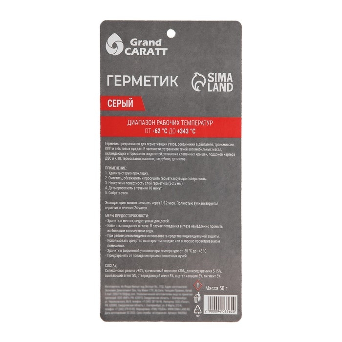 Герметик прокладок Grand Caratt, силиконовый, 50 г, серый