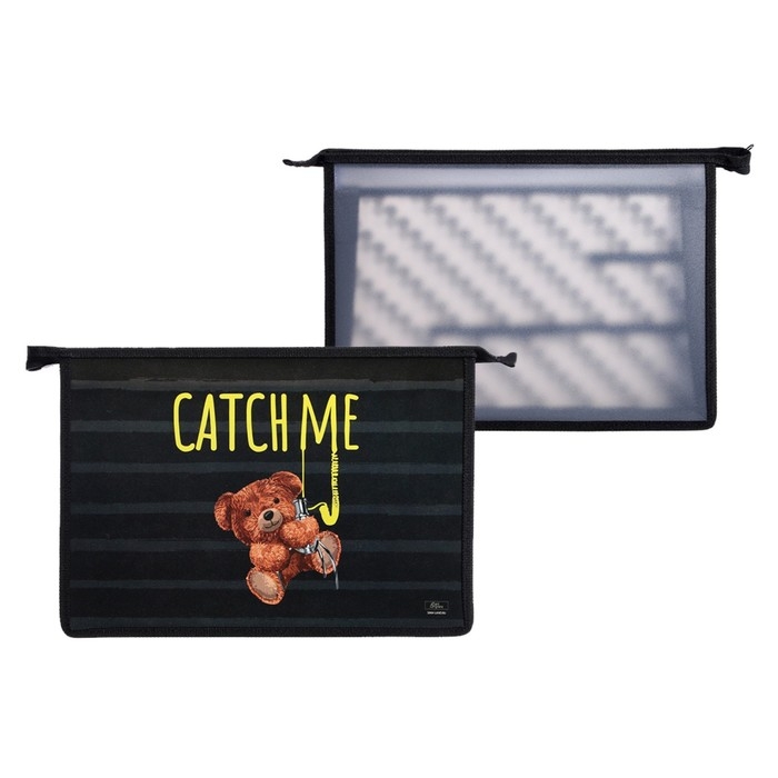 Папка для труда А4, 325 х 230 х 100 мм, молния сверху, пластиковая, ПТР-22 "Мишка"