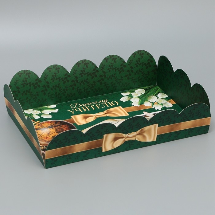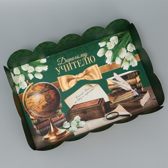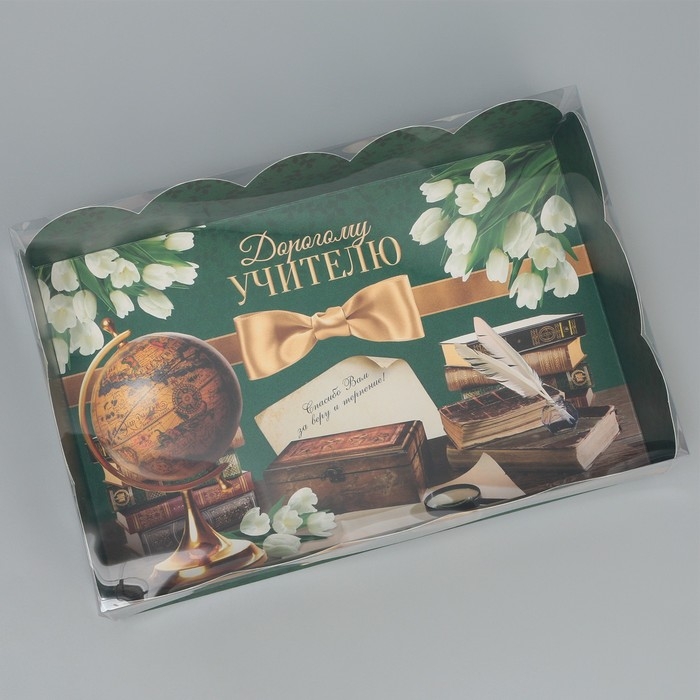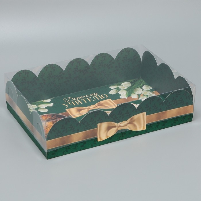 Коробка для печенья, кондитерская упаковка с PVC крышкой, «Дорогому учителю», 20 х 30 х 8 см
