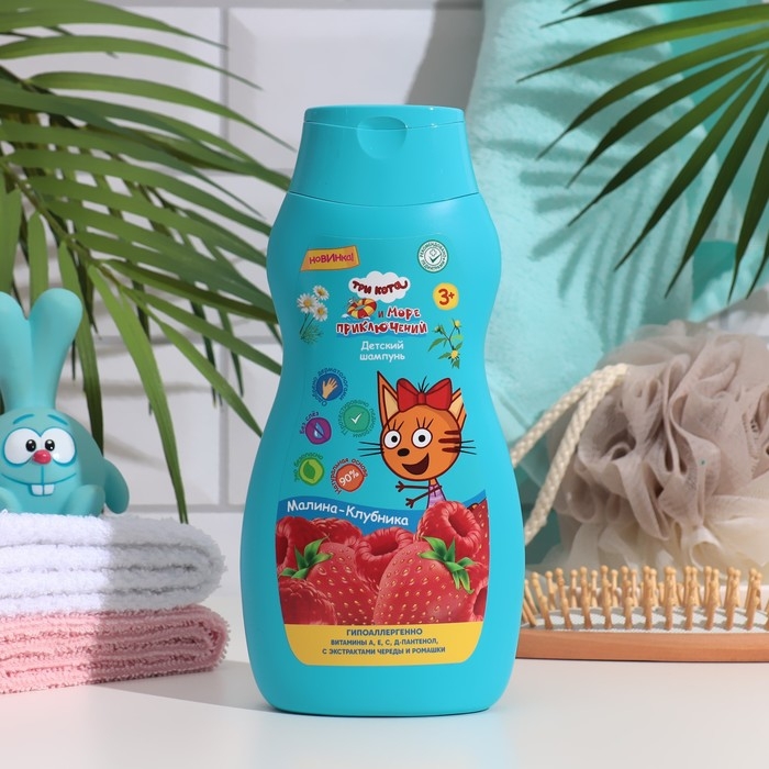Шампунь детский с экстрактами череды и ромашки "Три Кота" малина-клубника, 300 мл