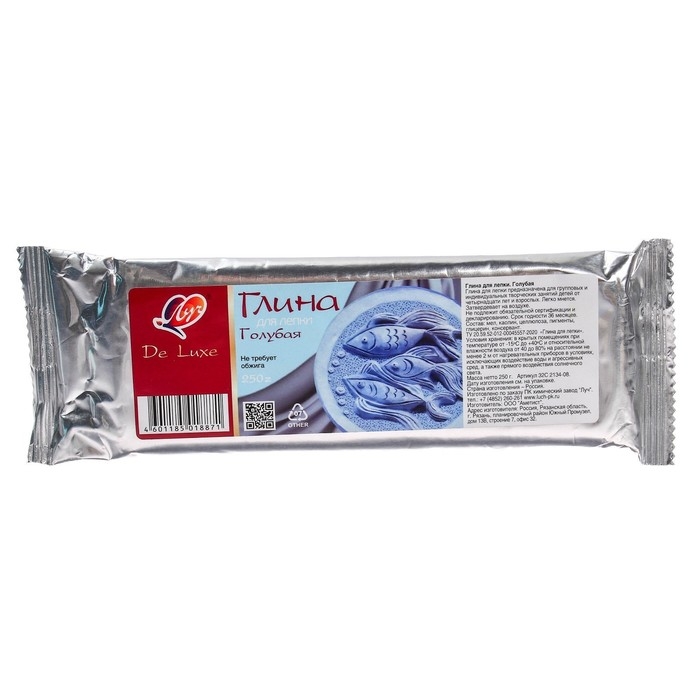 Глина для лепки Голубая 500 г "Луч" De Luxe, не требует обжига