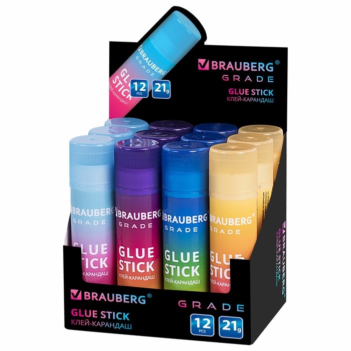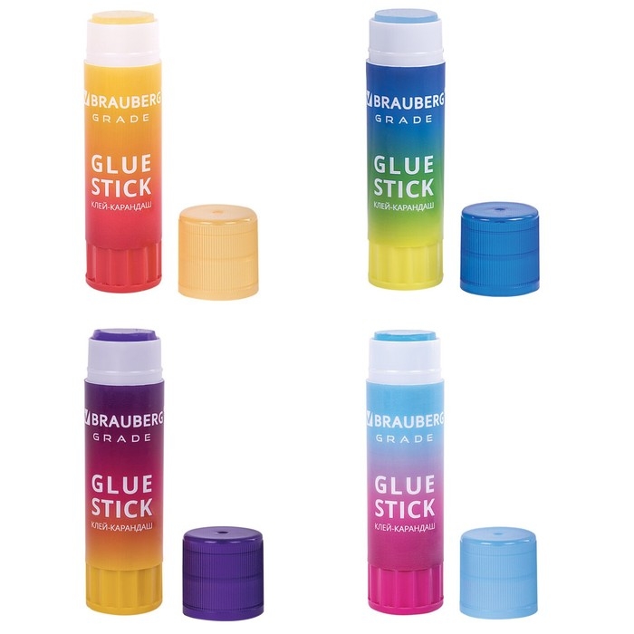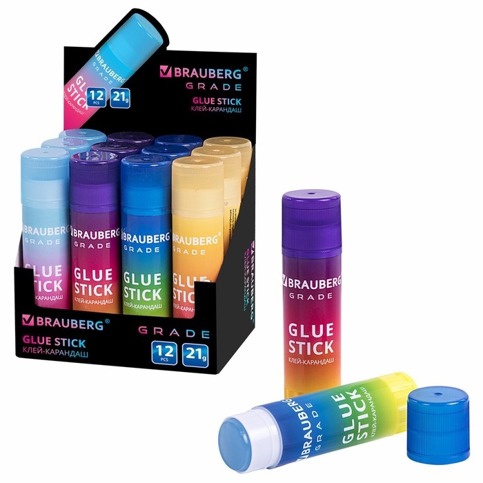 Клей-карандаш PVP 21г BRAUBERG GRADE, в градиентном корпусе, ассорти 271247