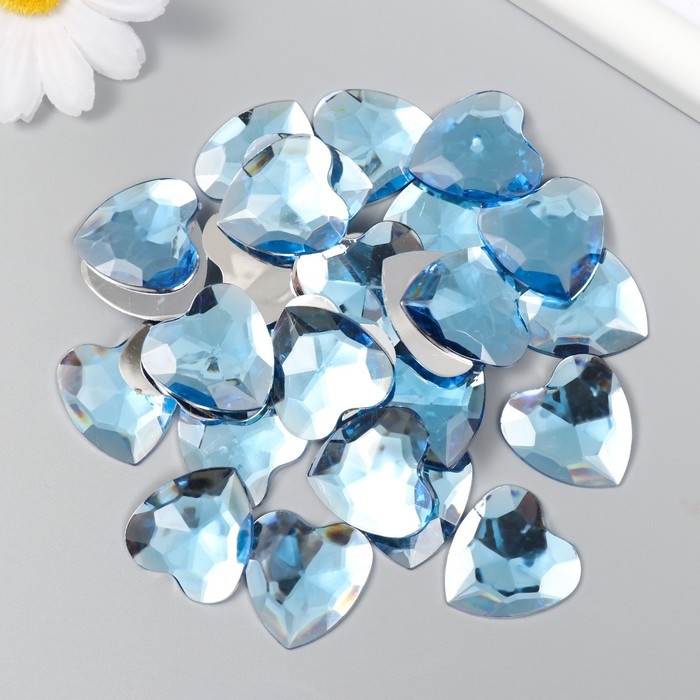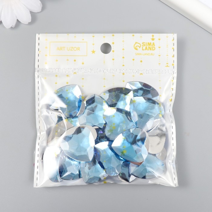 Декор для творчества пластик "Стразы сердце. Светло-голубой" набор 30 шт 2,5х2,5 см