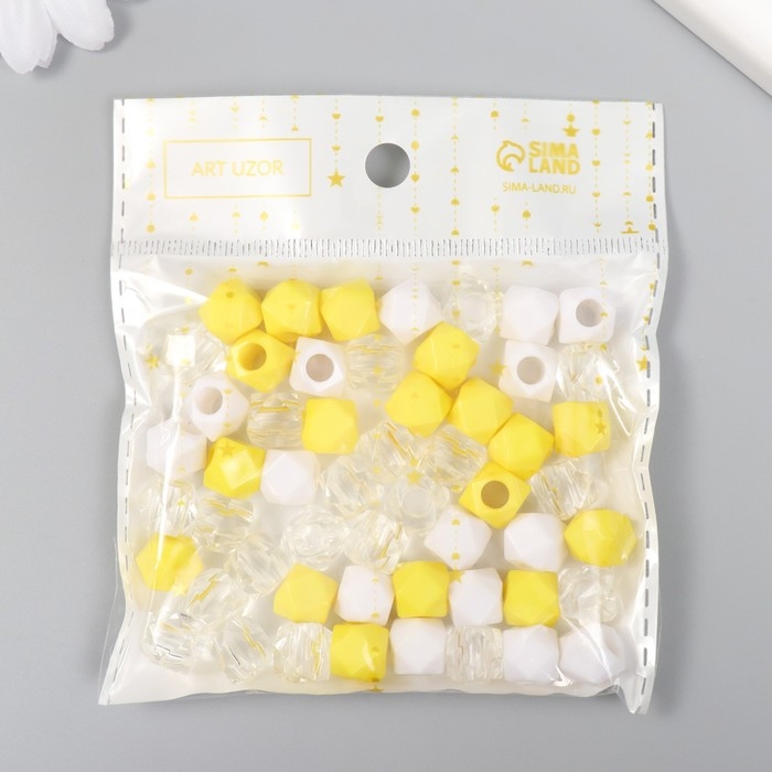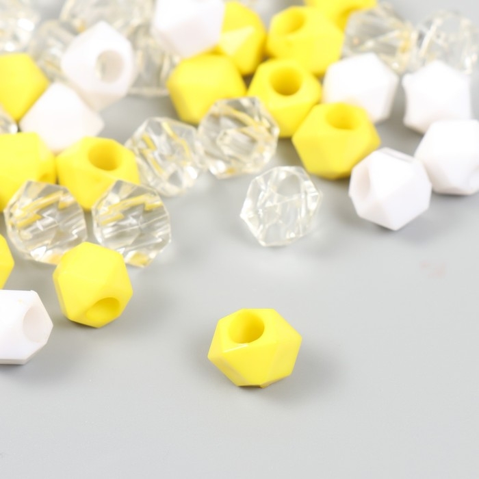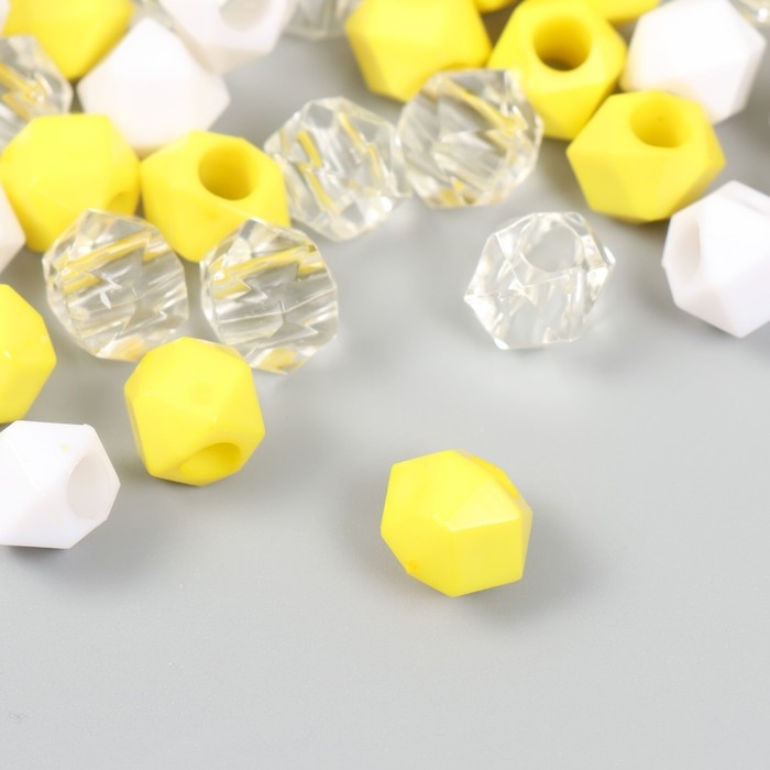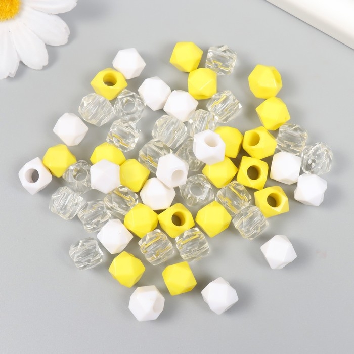 Бусины пластик "Кристалл многогранник. Жёлтый, белый, прозрачный" набор 30 гр 1х1х1 см