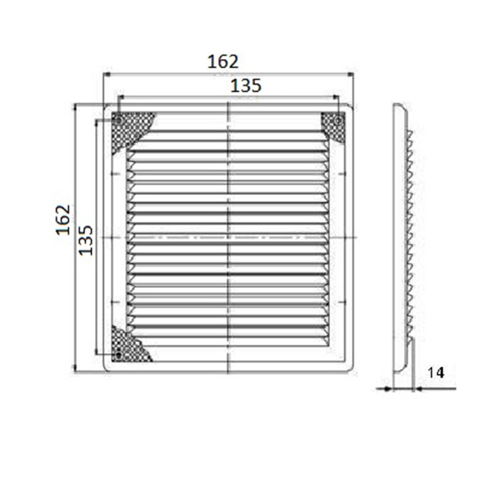 Решетка вентиляционная ZEIN Люкс ЛРР162В, 162 х 162 мм, с сеткой, разъемная, регулируемая
