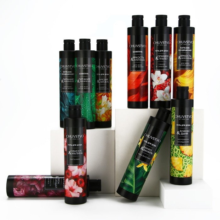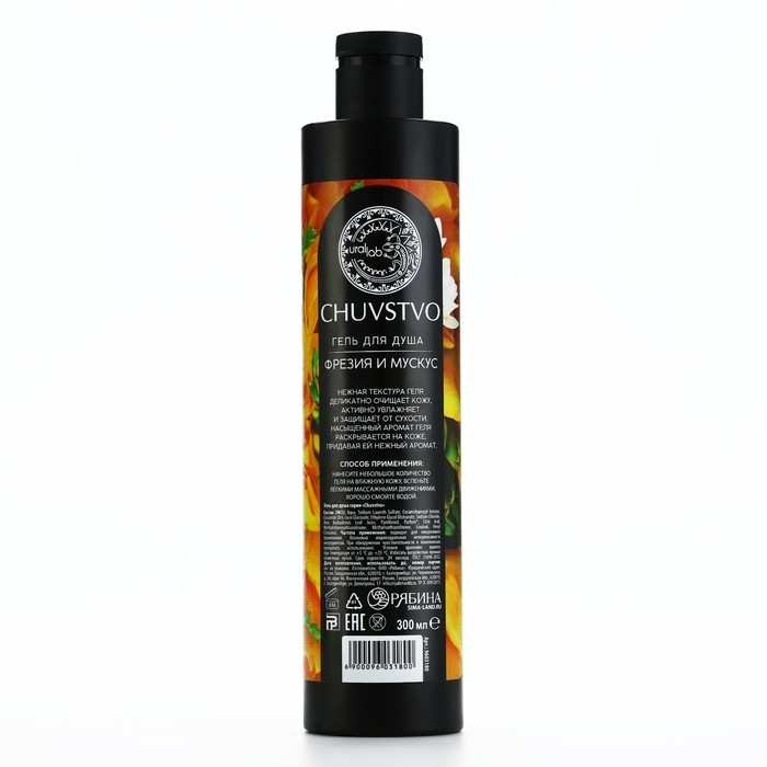 Гель для душа, забота и нежность, 300 мл, аромат фрезия и мускус, CHUVSTVO by URAL LAB