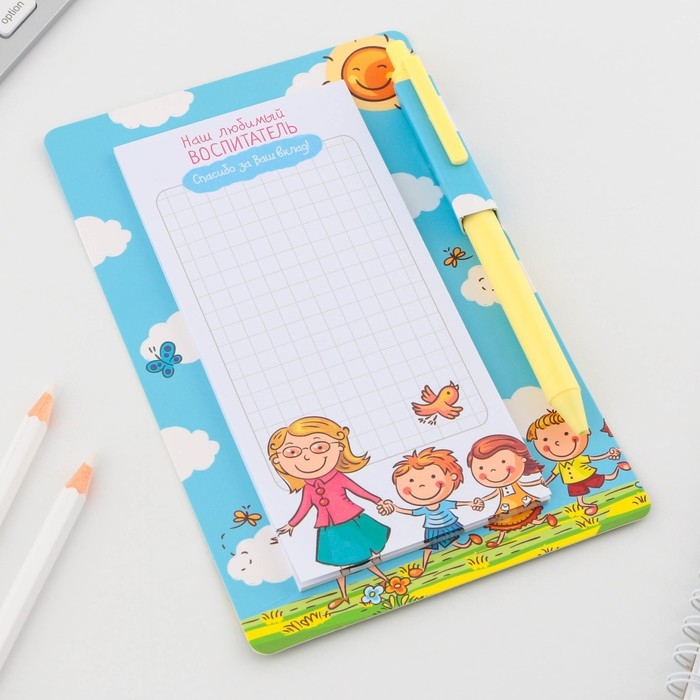 Стикеры с липким слоем, ручка синяя 0.7 мм, шариковая «Воспитателю: Для любимого воспитателя» 30 листов