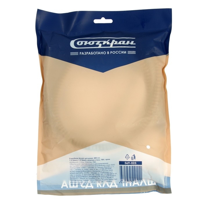 Душевой шланг СоюзКран предназначен для подключения душевой лейки к смесителю. Оптимальная длина в 200 см удобна как для ванной, так и для использования в душевой кабине.