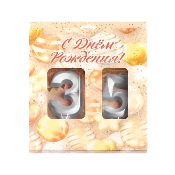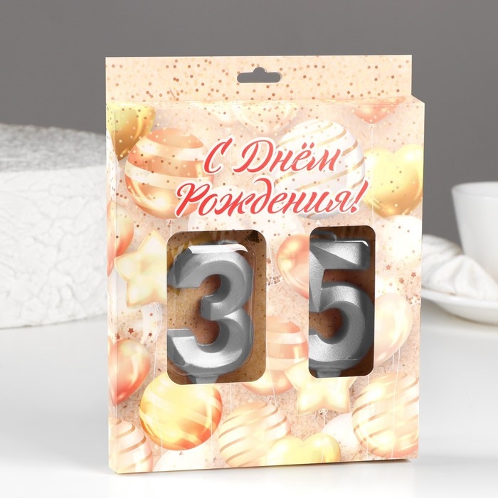 Свеча в торт юбилейная "Грань" (набор 2 в 1), цифра 35 / 53, серебряный металлик, 6,5 см