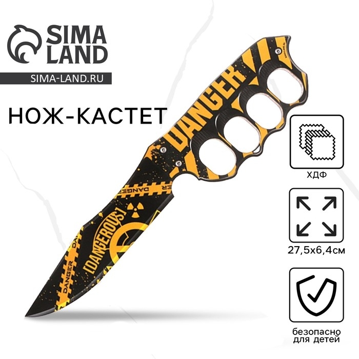 Деревянное оружие, детское сувенирное «Danger», нож кастет, 27,5 х 6,4 см - это яркое и безопасное оружие для детей!