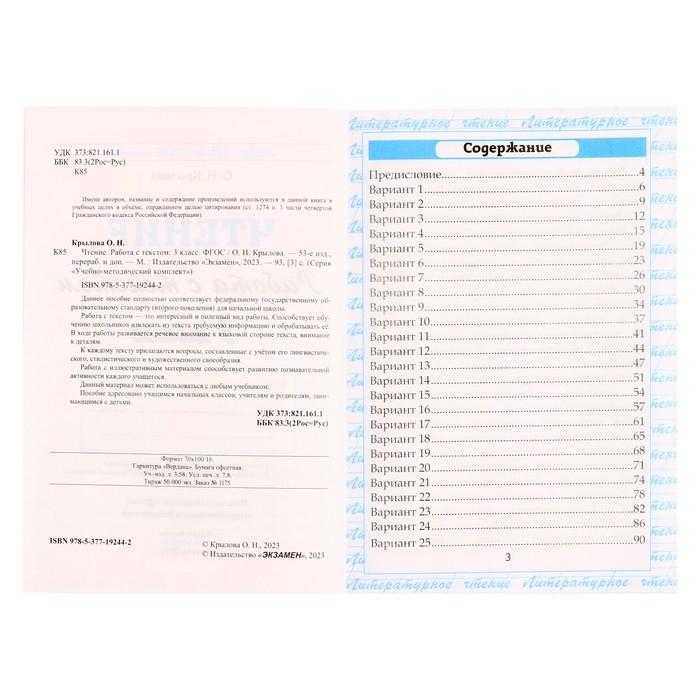 Чтение 3 класс. Работа с текстом 2025. Крылова О.Н.