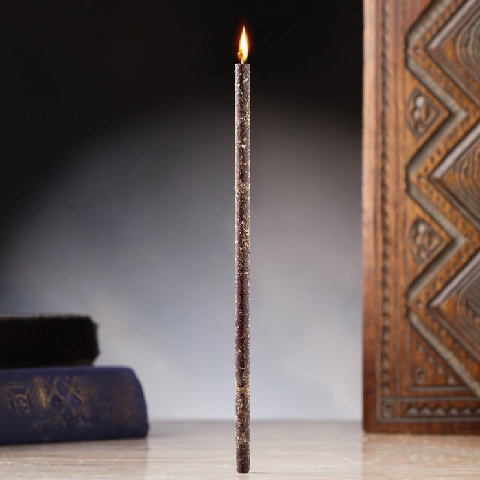 Свеча магическая восковая "Очищение", с полынью, 16х0,6 см, черный